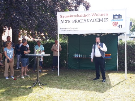 In der Zeit bis zum Abbruch bzw. zum Umbau der Bestandsgebäude hilft die Gruppe, eine Bürgerwerkstatt als Zwischennutzung in der Alten Brauakademie zu betreiben.